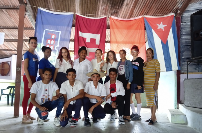 Tras disfrutar de la danza Soy Cubano de la agrupación Nueva generación la Secretaria en funciones de la UJC Elvira Moreno Verdecia el presidente del Consejo de defensa municipal Osmel Osorio López hicieron entrega del carné que los acredita como militantes de la UJC a jóvenes valerosos del IPA Manifiesto de Montecristi y del IPU Raúl Perozo Fuentes.