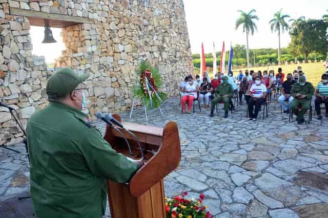 Desde el sitio donde en 1868 el patriota Carlos Manuel de Céspedes prendió la llama de la guerra anticolonial y dio la libertad a sus esclavos, se celebró el hecho histórico a partir del compromiso con el futuro y la reafirmación de los principios revolucionarios de la mayor de las Antillas.