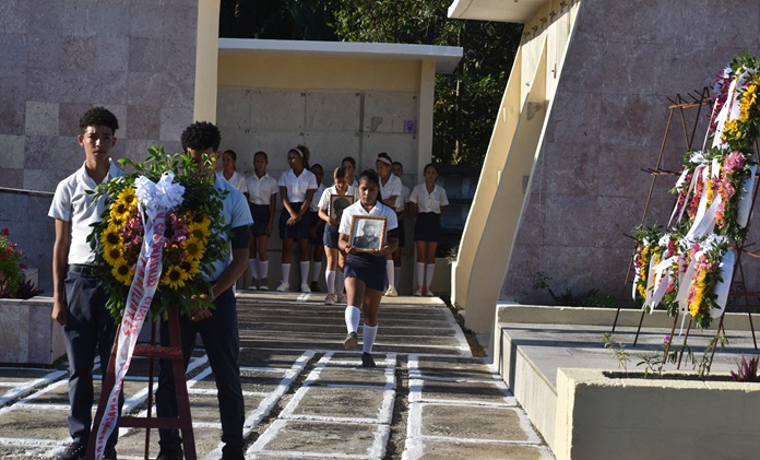 Ante el panteón que guarda los restos de “los caídos en la defensa de la Patria”, se desarrolló la ceremonia principal, donde el Primer Secretario del Partido Comunista de Cuba en el municipio, destacó la valentía y la abnegación de estos jóvenes mártires, enfatizando cómo “contribuyeron con su sangre a abonar la libertad de los países africanos”, a la vez que subrayó la mezcla de honor, orgullo y profundo dolor que embarga en una fecha tan significativa.