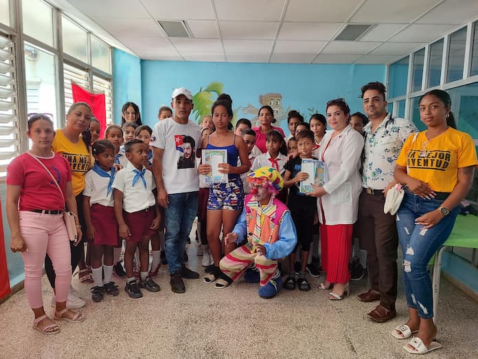 El Semi Internado Carlos Manuel de Céspedes, en conjunto a la Unión de Jóvenes Comunistas en Jobabo desarrollaron, como parte de la jornada en saludo a los aniversarios 62 y 63 de la UJC y la Organización de Pioneros José Martí, una actividad cultural dedicada a los niños ingresados en la sala de Pediatría del Hospital 14 de Junio.