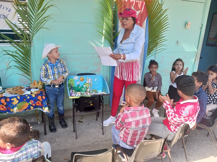 Participación de los destacamentos Durante la jornada, cada destacamento se lució con la presentación de muestras que incluyeron platos típicos de la cocina criolla, la exhibición de animales de corral y el uso de la vestimenta tradicional cubana. La meticulosa preparación de los estudiantes y el apoyo de las familias permitieron que el patio de la escuela se convirtiera en un reflejo vivo de la vida en el campo, donde no faltaron el sombrero de guano y la guayabera.